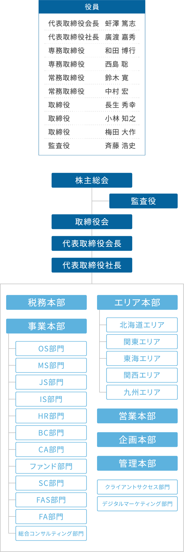 | 事業内容 | マネジメントサービス、事業承継支援、企業再生支援、IT戦略支援、IPO支援、ヘルスケア支援、M&A支援、国際業務支援 |